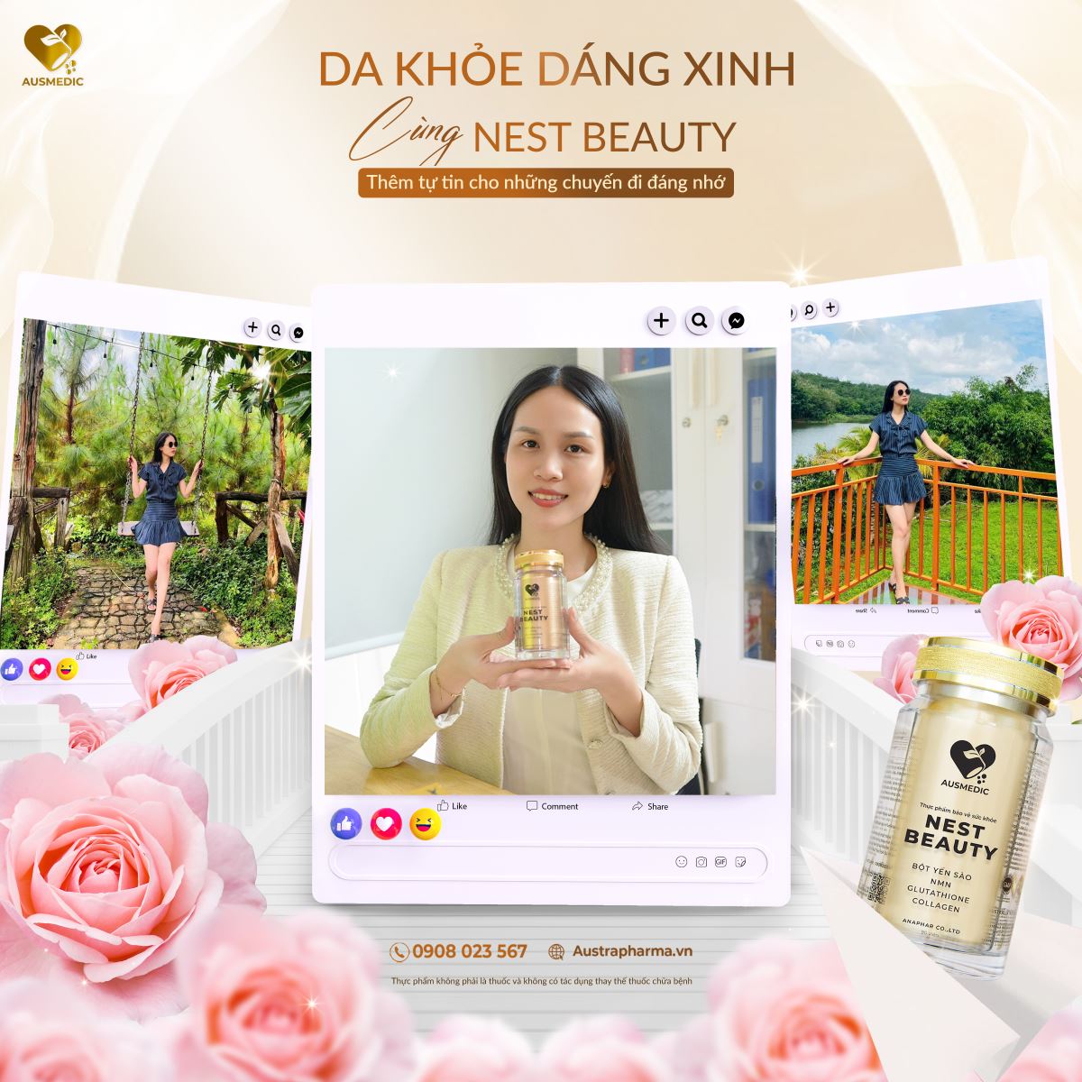 Sau khi được đồng nghiệp giới thiệu, chị Huyền quyết định thử viên uống yến sào Nest Beauty từ thương hiệu Ausmedic – sản phẩm hỗ trợ làm đẹp da từ bên trong, lý tưởng cho phụ nữ văn phòng bận rộn. Với công thức thiên nhiên cao cấp, Nest Beauty chứa các thành phần chính: tổ yến (yến sào), NMN (Nicotinamide Mononucleotide), Nano Collagen và Glutathione, giúp bổ sung độ ẩm sâu, chống oxy hóa và tái tạo da hiệu quả.