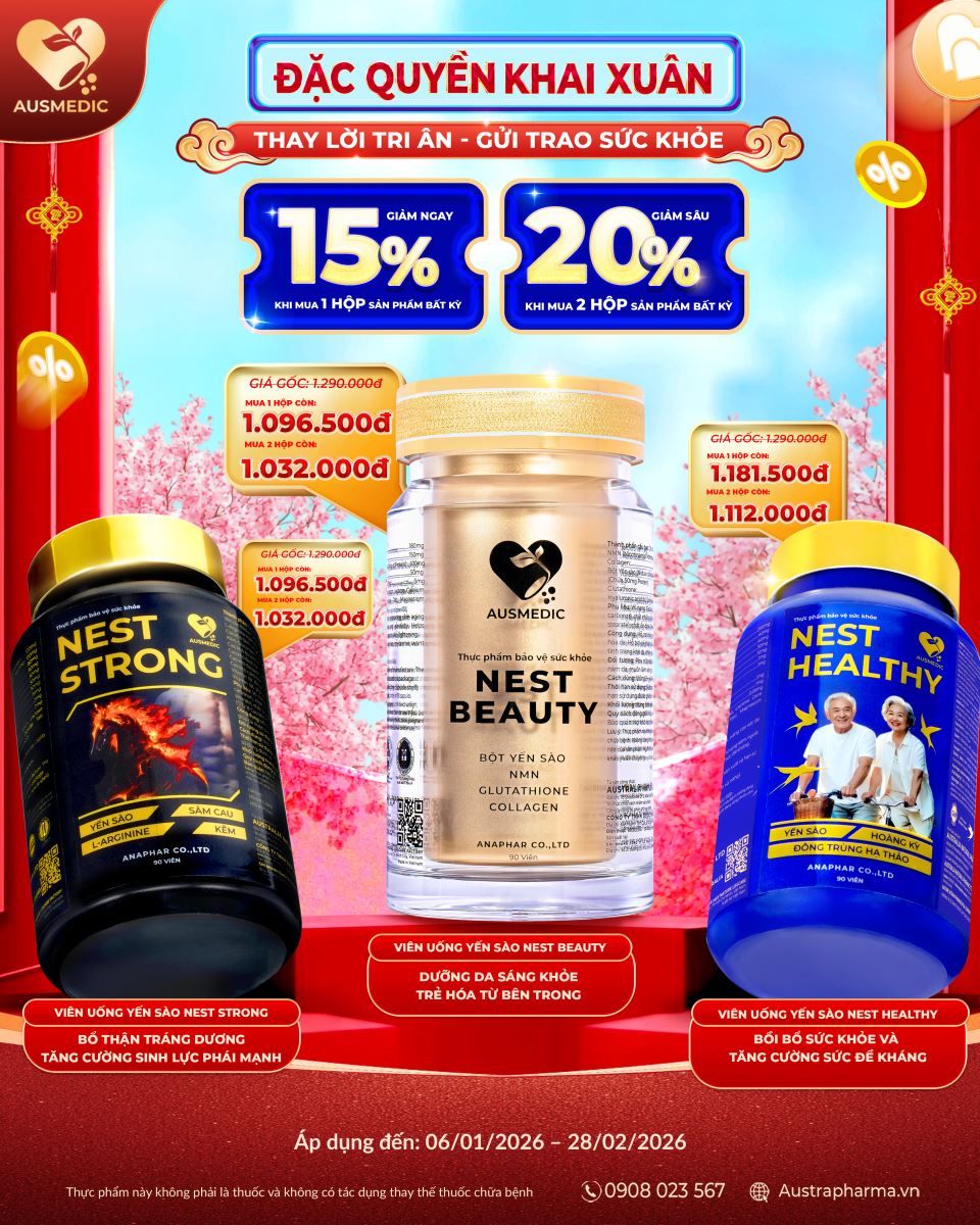 Trong bối cảnh vận hội mới 2026, Ausmedic tự hào dẫn đầu xu hướng sức khỏe với dòng Yến sào dạng viên nang đầu tiên tại Việt Nam. Chứa tới 70% hàm lượng yến nguyên chất kết hợp thảo dược quý chính là chìa khóa để nuôi dưỡng nội lực từ cấp độ tế bào. Hãy để Ausmedic đồng hành cùng bạn trên con đường chinh phục sự phồn vinh bằng một cơ thể dẻo dai và tâm trí minh mẫn nhất.
